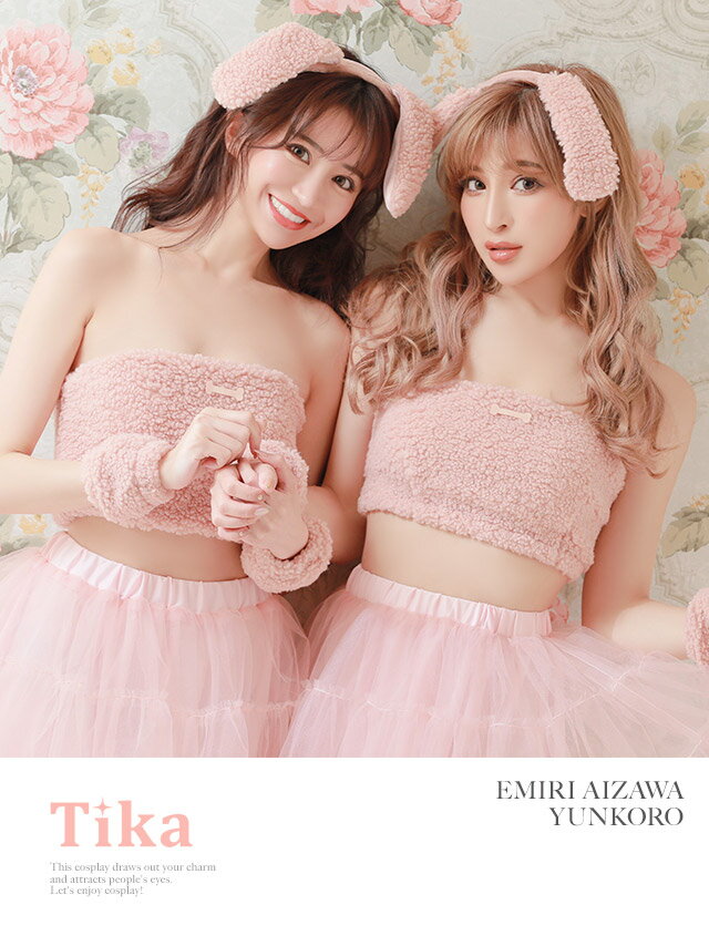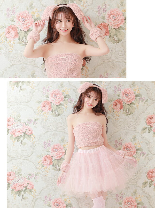 肌触りの良いもこもこふわふわでとっても可愛い 女の子らしい淡いピンクプードルコスチューム! チューブトップスとスカート、カフス、カチューシャ、 ニーハイソックスがついた豪華なりきり5点セット♪