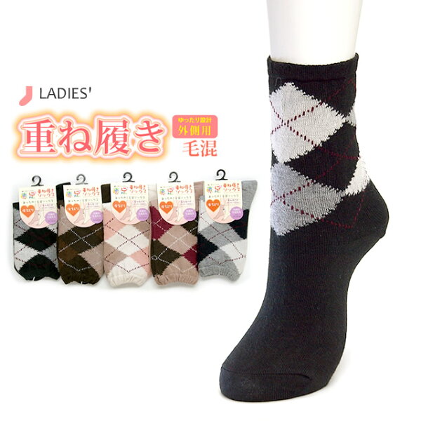 【冷え取り靴下】重ね履き靴下 外側用-冷え取りソックス(ダイヤ)毛混 クルー丈 レディース 女性 ゆったり 婦人 靴下 ソックス