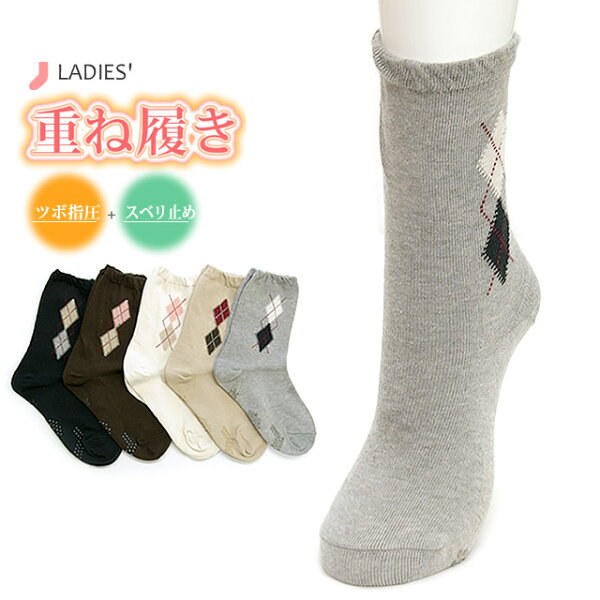 【冷え取り靴下】重ね履き靴下 外側用-ソックス(ダイヤ)ツボ指圧&スベリ止め綿混 クルー丈 レディース 女性 ゆったり 婦人 靴下 ソックス