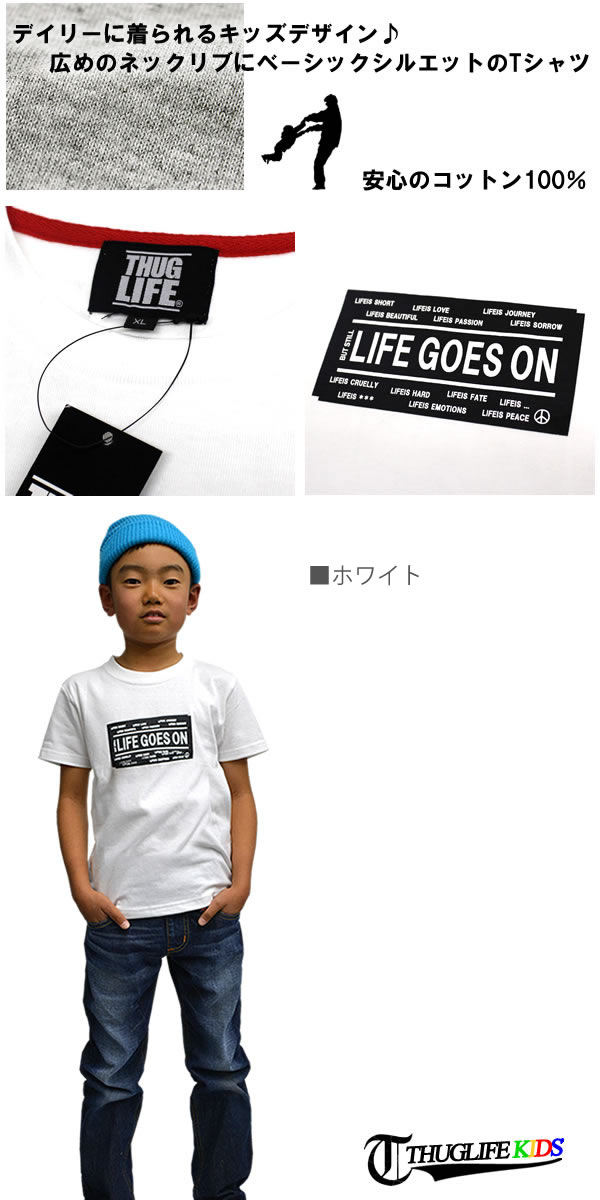 ■商品説明 THUGLIFE KIDS サグライフキッズ LIFE GOSE ON 半袖Tシャツ 5カラー 130 140 150 160 サグライフからメンズで登場した「LIFE GOSE ON」デザインをキッズサイズのTシャツにセット!サイズは130から160まであり、カラー豊富です。
