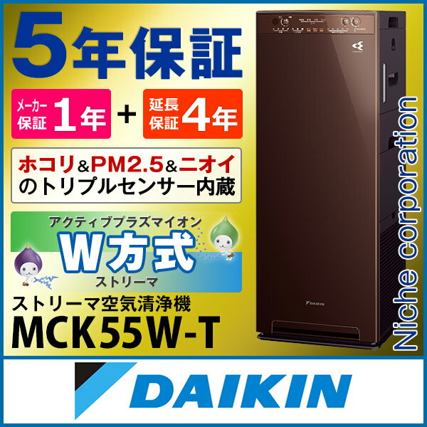 ダイキン 加湿ストリーマ空気清浄機 ディープブラウン[MCK55W-T]スクエアフォルムでさりげなくお部屋に溶け込む、暮らし目線のスリムタワー型空気清浄機▼【加湿力】お肌にうれしいパワフル加湿加湿量500ml/時のパワフル加湿。